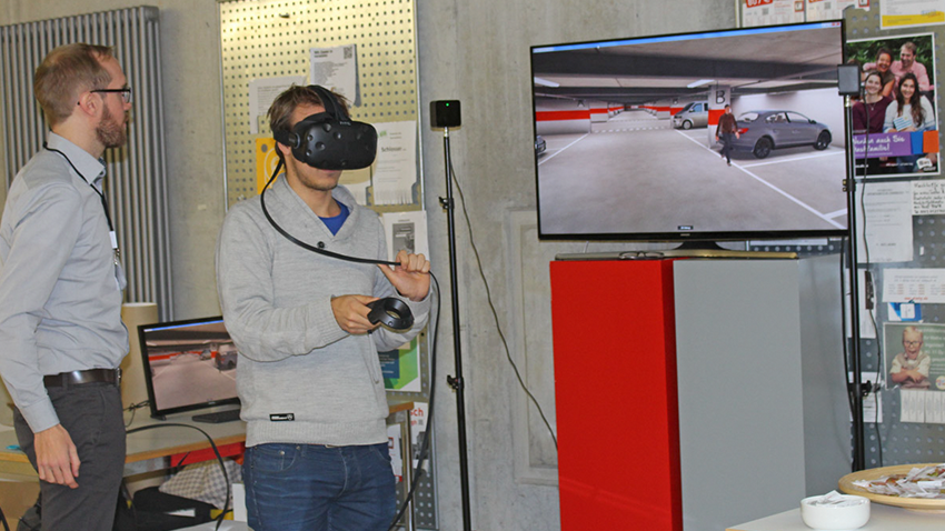 Gleich sechs interessante Themen, wie beispielsweise „Usability im Kontext des autonomen Fahrens“, „Erzähl doch mal von früher – Konzeption einer nutzergerechten Plattform zum Wissenstransfer zwischen Jung und Alt“ und „Ich will Spaß, ich geb‘ Gas – Warum automatisiertes Fahren alleine nicht genug ist“ sorgten im Vortragsteil für einen mehr als gut besuchten Hörsaal. Im Rahmenprogramm erfreuten sich vor allem die Präsentationen „High End Virtual Reality-Präsentation in der CAVE“, von Prof. Dr. Thomas Grauschopf, Leiter VR-Labor und „Dynamischer Fahrsimulator und Möglichkeit zur Nutzung in der Usability-Forschung“ von Prof. Dr. Andreas Riener, Leiter Hexapodenlabor THI, großer Beliebtheit. Viel Zuspruch fand auch die Vorstellung des Studentenprojekts „Intuitive Interaktionskonzepte für Augmented Reality“, durchgeführt vom Audi-Center of Competence VR/AR, Ingolstadt sowie zahlreiche weitere vielversprechende Projekte und Arbeiten, die Anlass zum Austausch und zu Gesprächen unter den Teilnehmern boten.